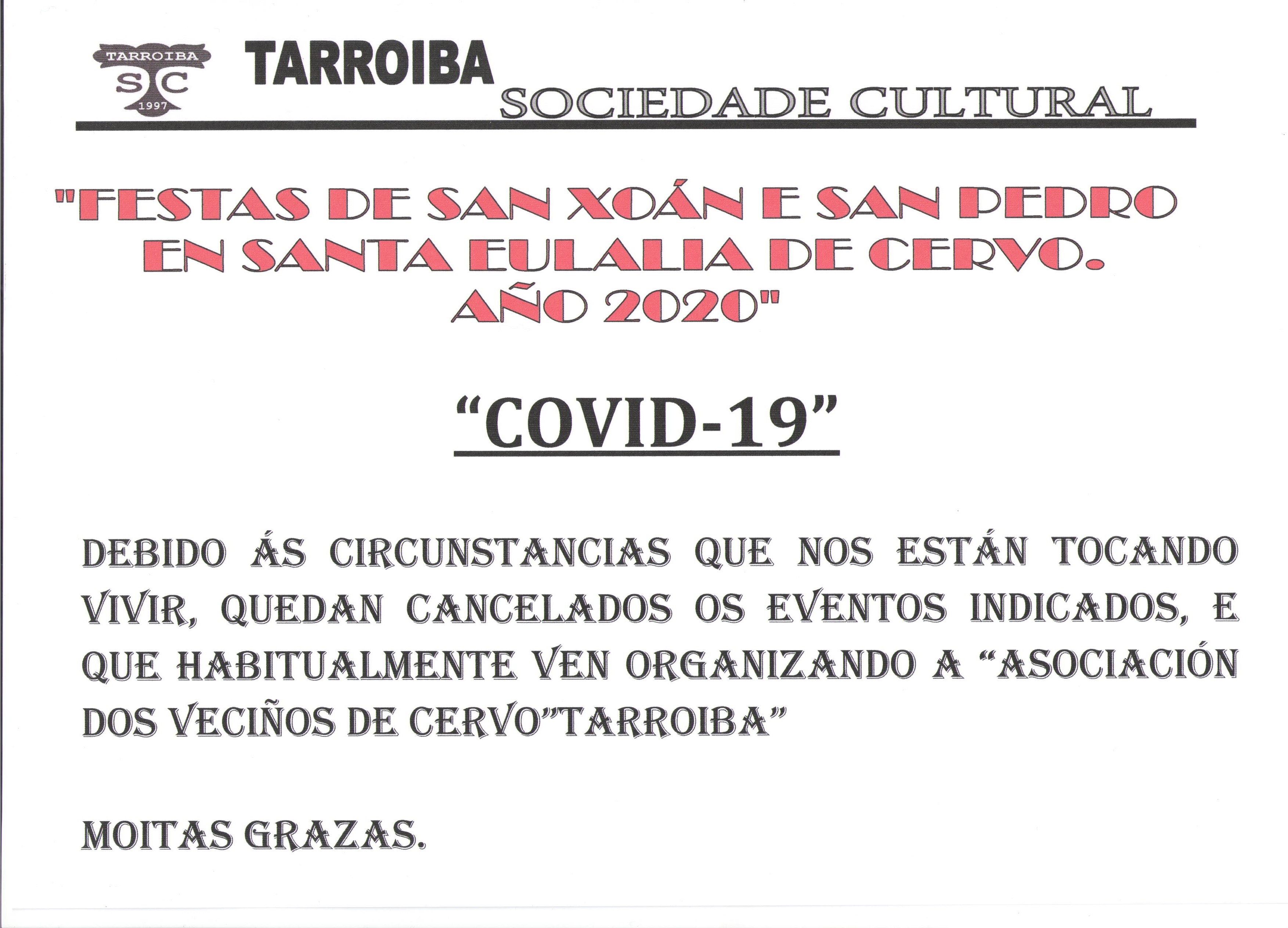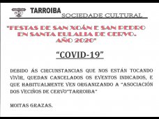 | Esta Asociación de Veciños de Cervo "Tarroiba" desde o ano que inicio o seu recorrido, está a facerse cargo coa colaboración dos veciños, recordar dúas fechas importantes das festas parroquiales. San Pedro (suele celebrarse o último domingo do mes de Xuño) e o Remedios (o terceiro domingo do mes de Setembro). |
